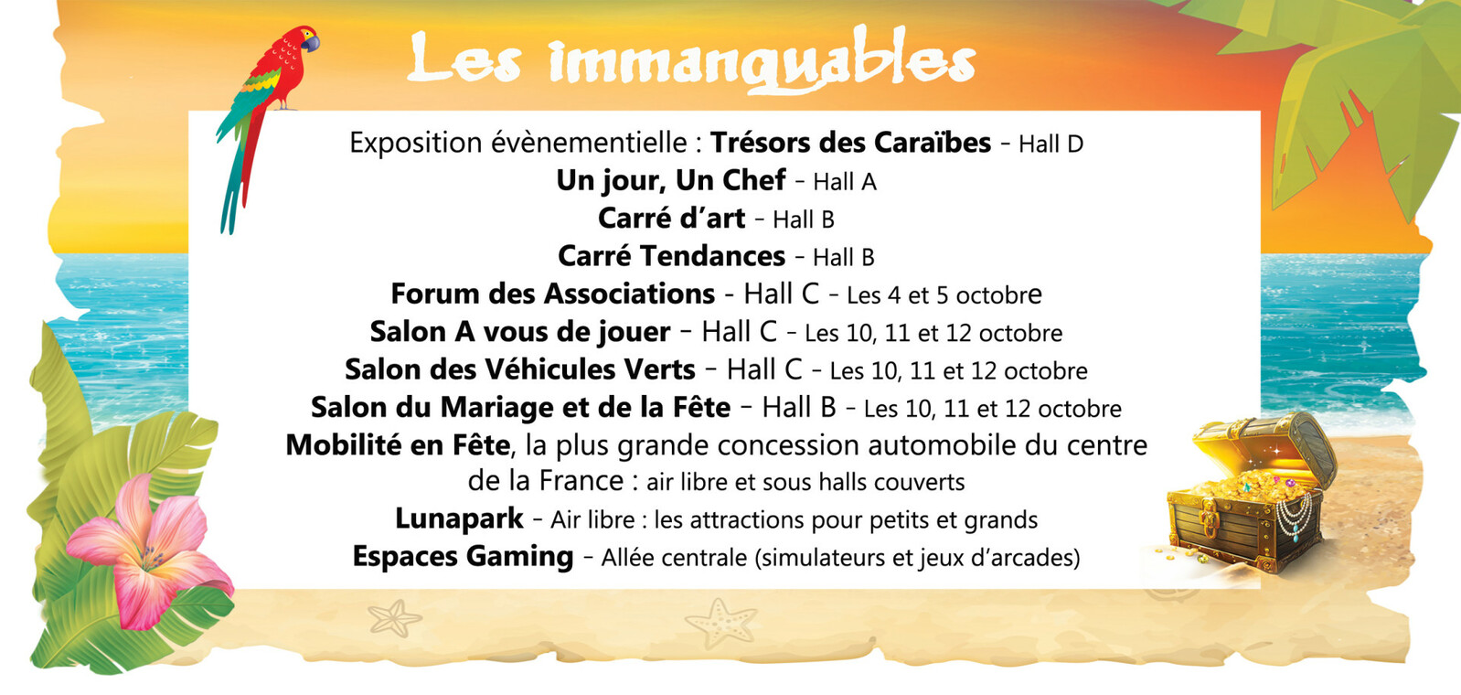 ![]() | Jacky DEPP Sosie officiel du capitaine Jack Sparrow, Déambulations dans l’exposition | ![]() | Olivier la Buse les 10, 11 et 12 octobre 2025 Déambulations dans l’exposition Célèbre pirate à la recherche de son futur équipage pour partir à l’assaut des océans... |